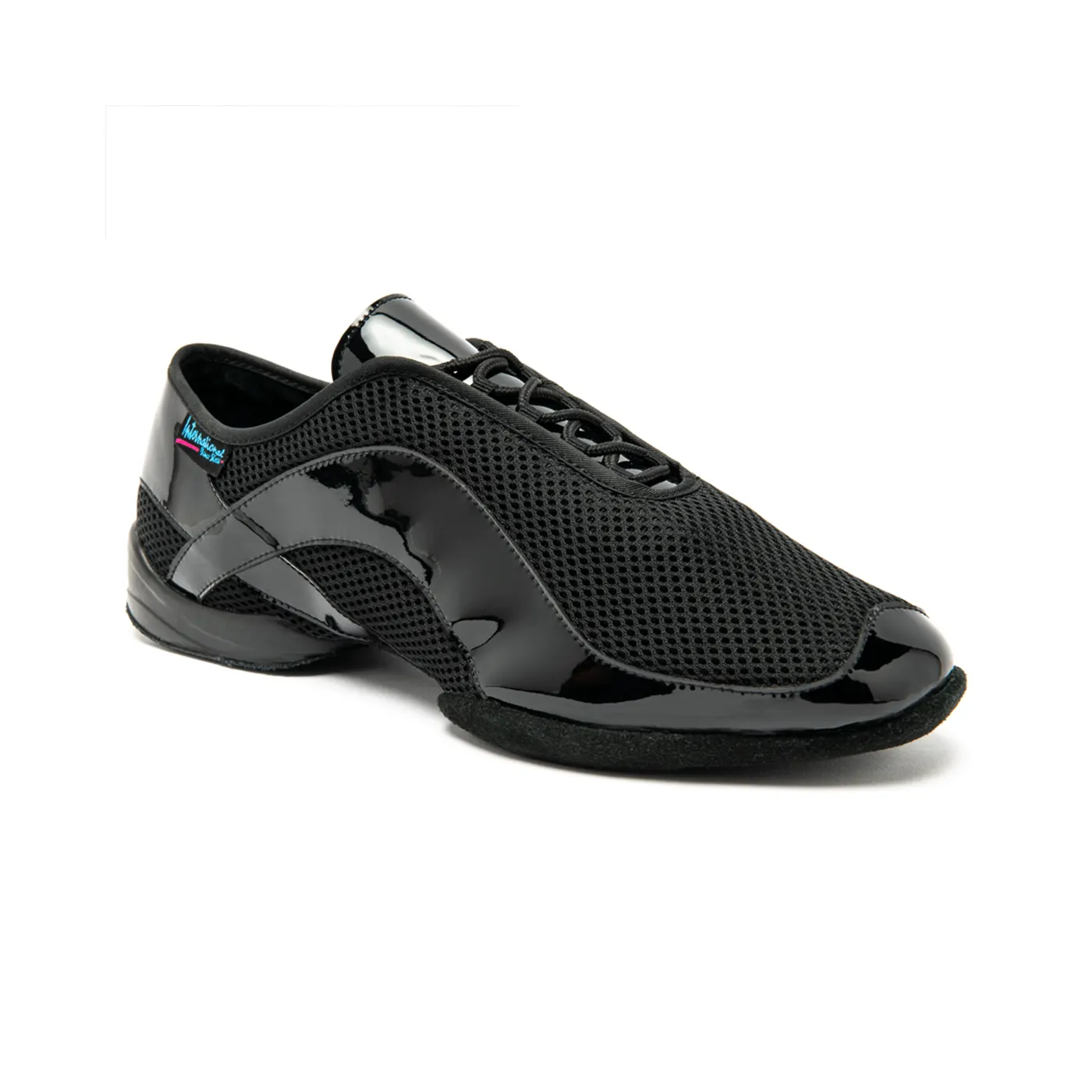 The Tempo AirMesh with Black Patent accent is a unisex practice shoe, and was designed and engineered to meet the needs of dancers who spend long hours on the ballroom floor teaching or practicing, in a stylish design that combines elegant Black Patent and an ultra lightweight technical fabric called AirMesh. A soft foam padding is layered throughout the insole, with extra cushioning underneath the heel and the forefoot for the best in comfort and support. International Dance Shoes of England has designed the ultimate practice sneaker.